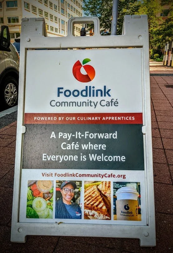 I remembered a recent call for urban innovations submissions from Sonia Weiser’s marvelous newsletter, Opportunities of the Week, and so I walked into the cafe to get a sense of ambience and employees and clients. Then, I walked back to my Airbnb and researched Foodlink and their culinary fellowships and the cafe which offers full meals to anyone with $2 and invites those with surplus income to donate a few extra dollars above the cost of their own meal.